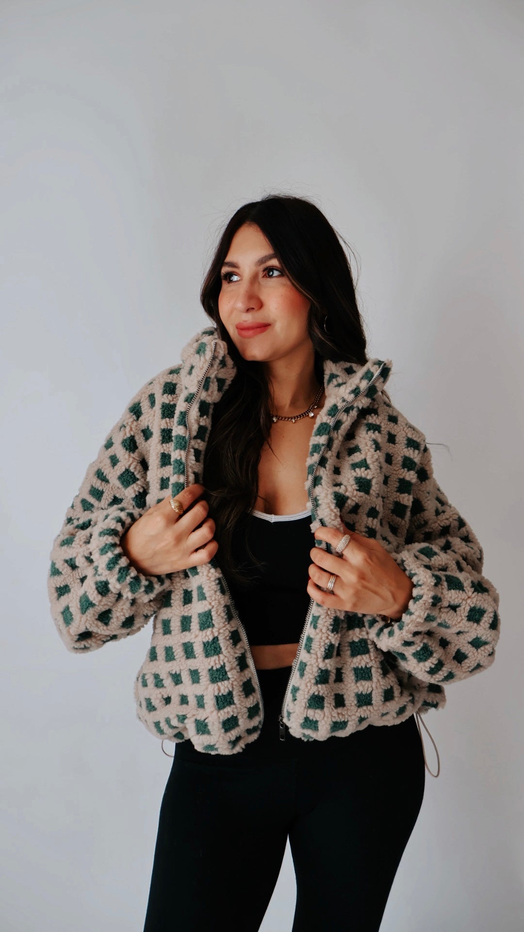 Stay cozy and stylish with our Lana Sherpa Jacket, featuring a soft and fuzzy sherpa material, a convenient zipper closure, and bungee ties for a customizable fit. Plus, it's equipped with pockets for all your essentials.