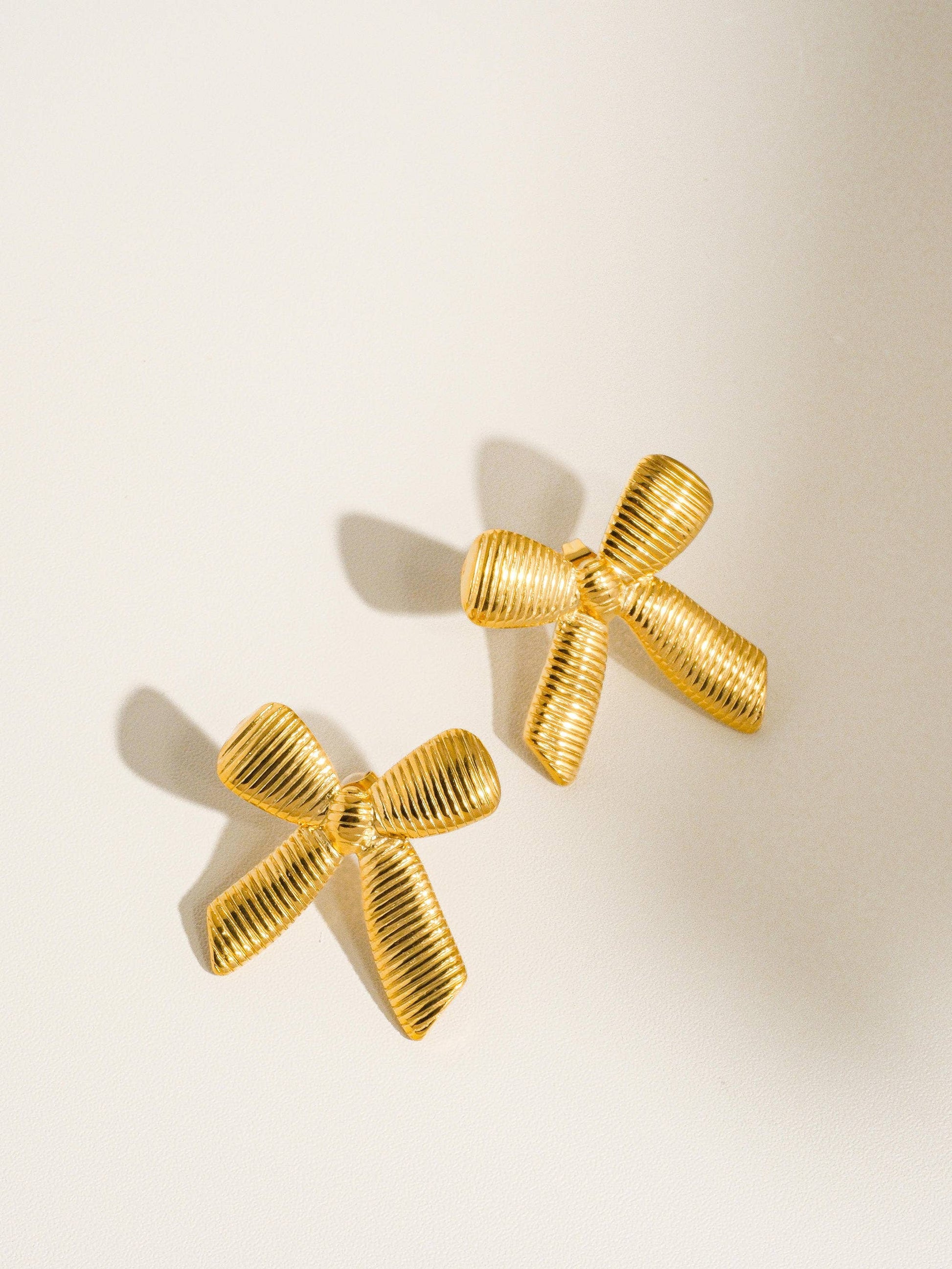 18K Gold Non-Tarnish Bow Stud 18K Gold Plated Stainless Steel