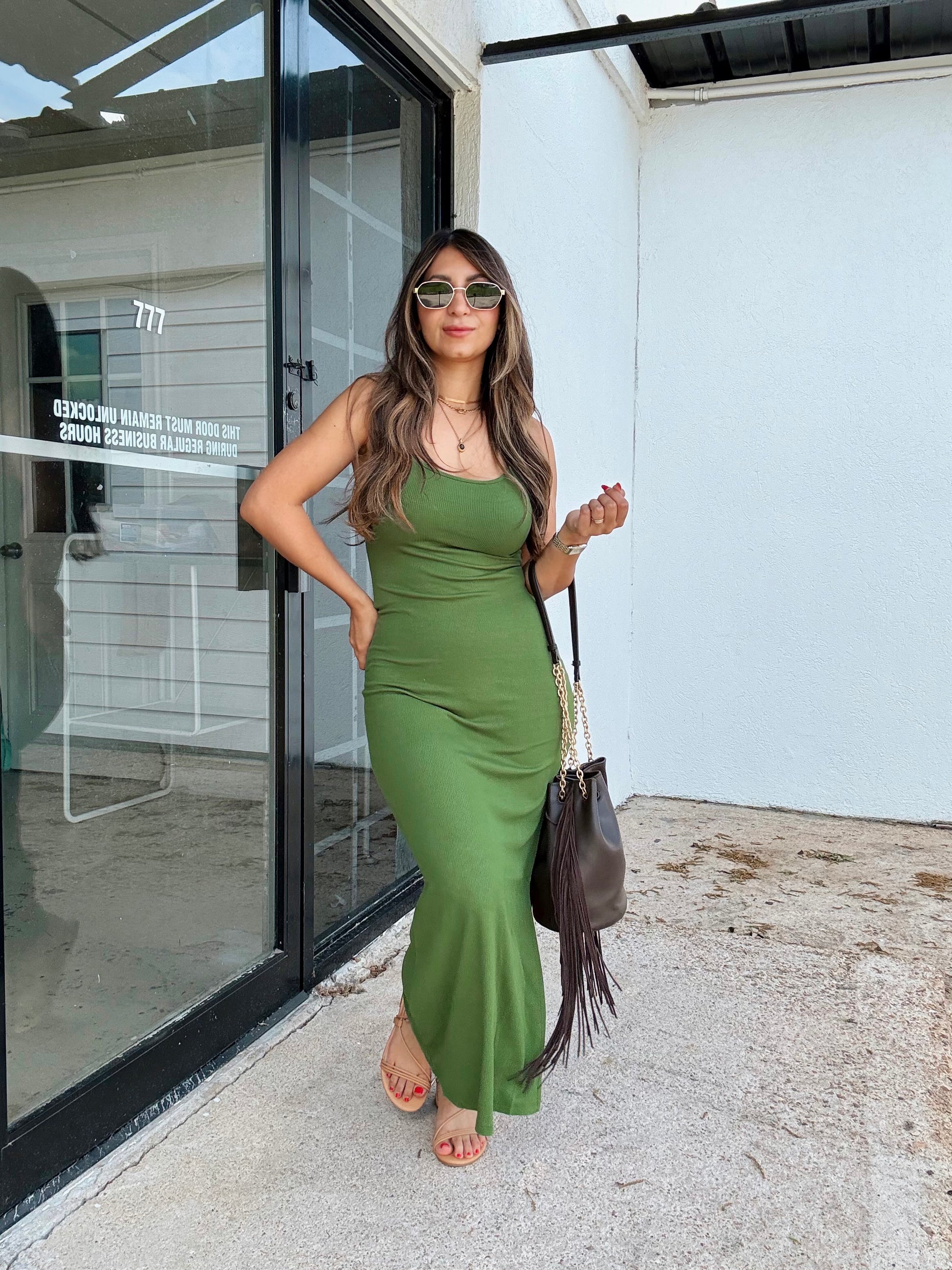 The Ibiza Green Bodycon Maxi Dress is made of ribbed knit fabric that offers maximum stretchability for a comfortable fit.