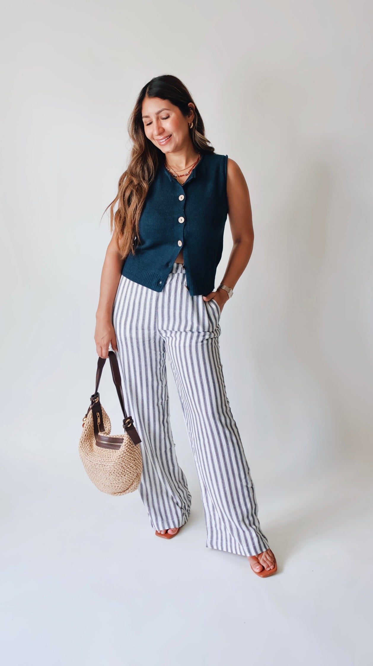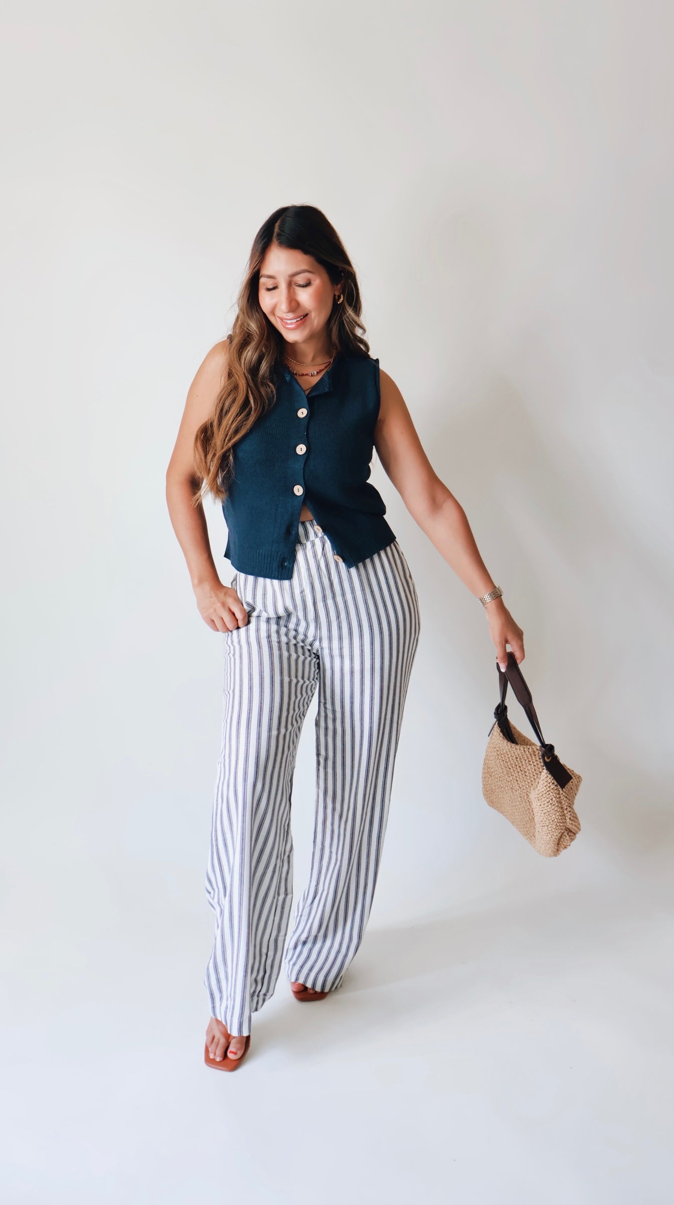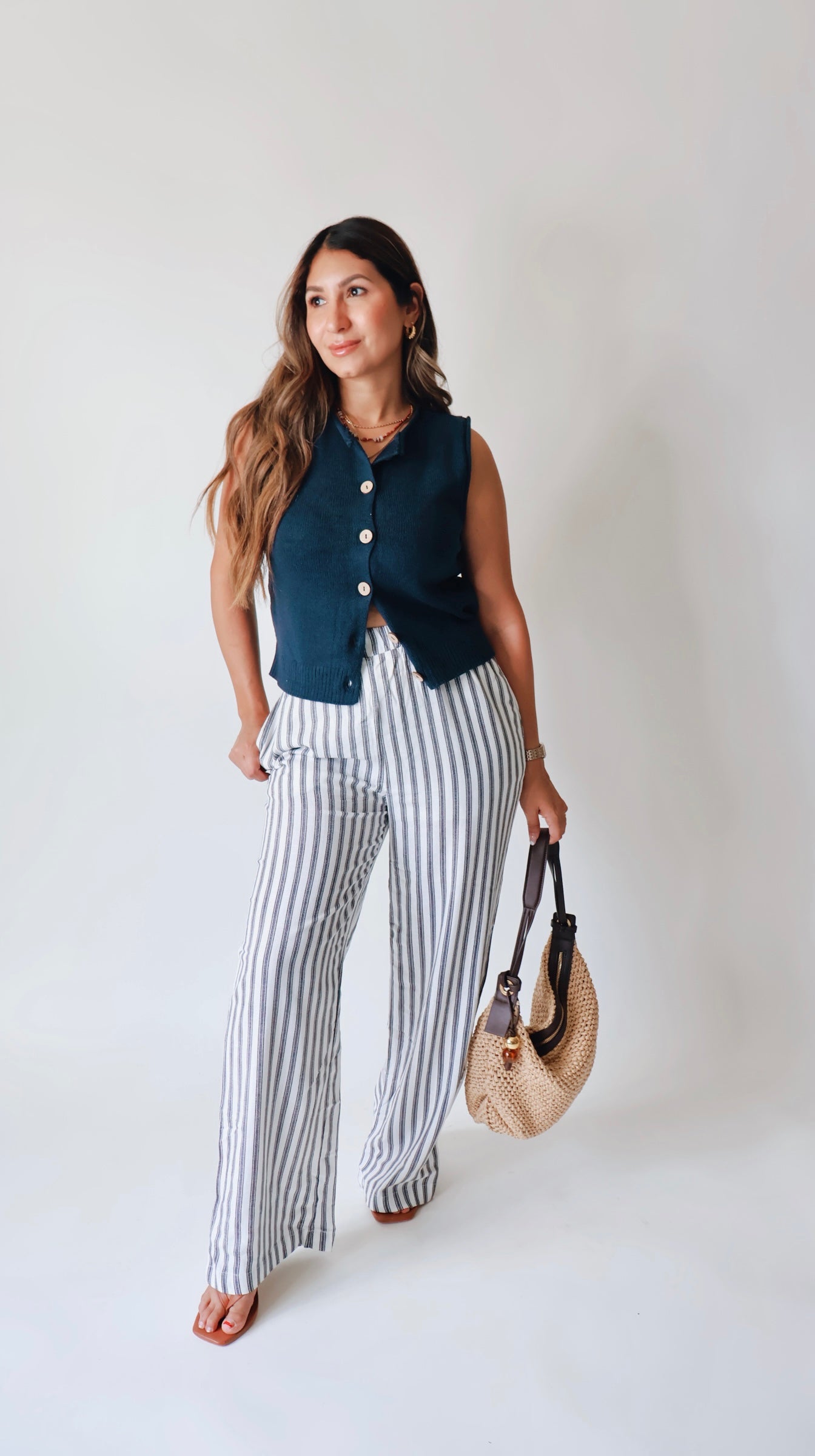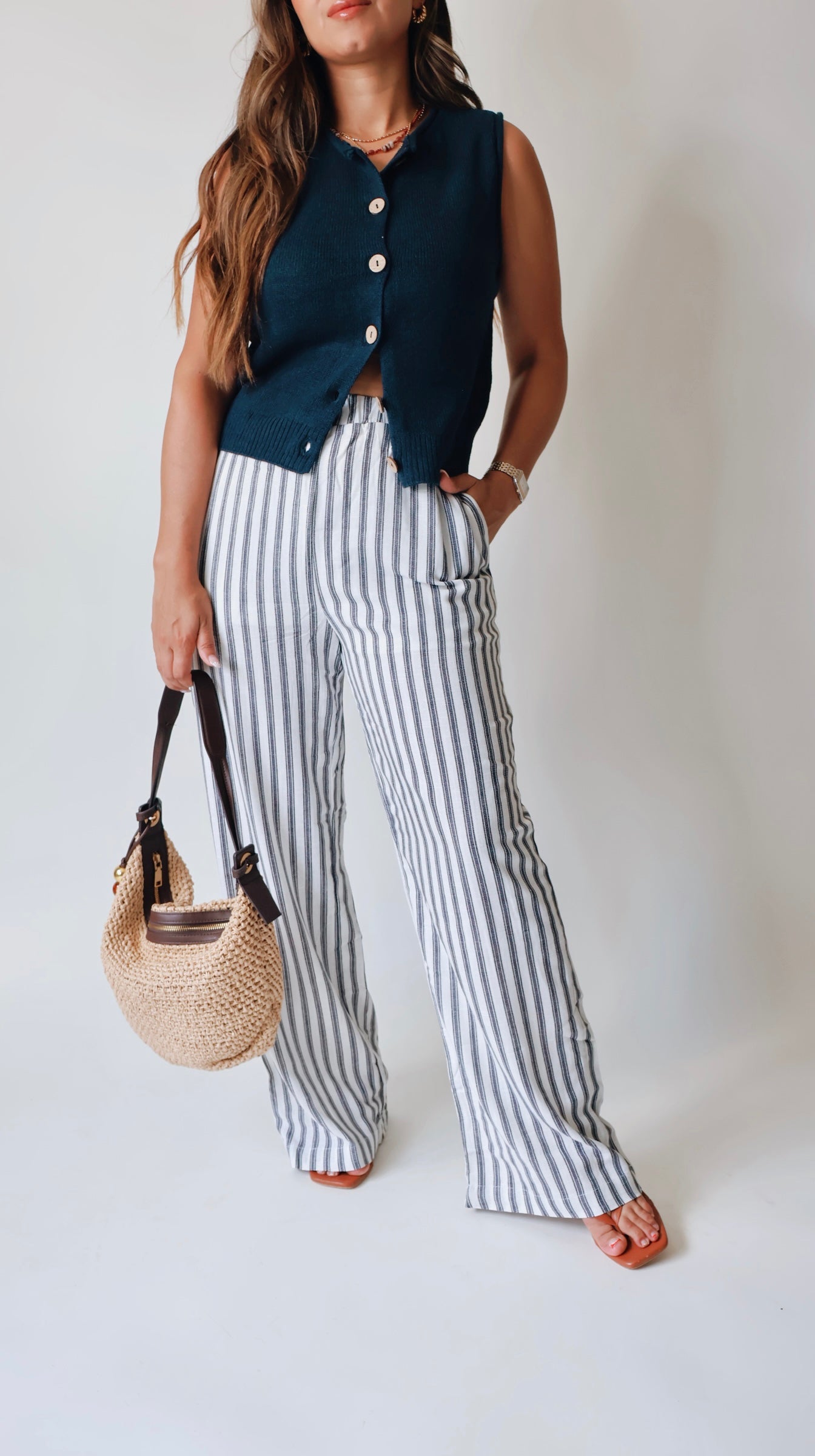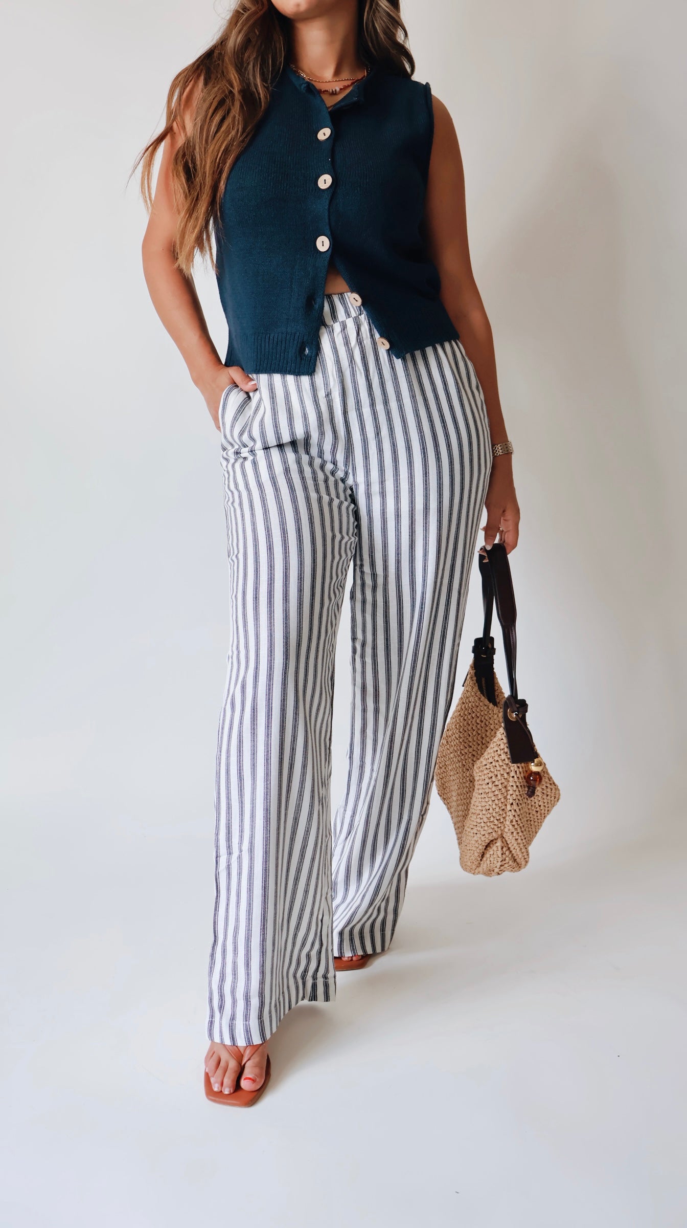 Lux Striped Navy Linen Pants